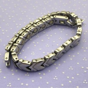 Magnetic Therapy Stainless Steel Bracelet Chevron Design Gender Neutral. Bracelet with foldover clasp. Measures approx 8" and is gender neutral style, very nice and clean, strong magnets, no tarnish or discoloration. #24