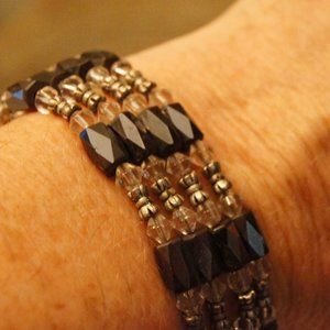 Magnetic Wrap Bracelet Black and silver beads 36"