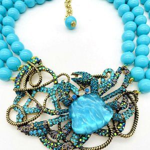Magnificent HEIDI DAUS "Crabby" Crystal Triple Strand Beaded Necklace NWOT