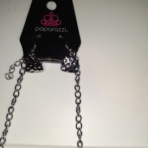 Paparazzi -Jewelry, Magnificent Musings Set. This chic and modern ensemble features a silver-plated necklace and matching earrings that embody a chunky design. Perfect for special occasions.