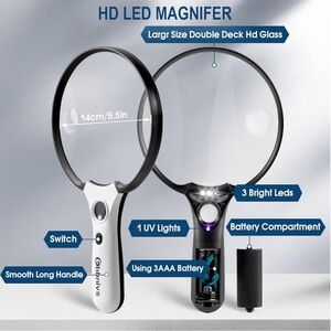 Large Magnifying Glass with Light, Magnifier Handheld Illuminated Lighted Magnifier with 3 LED Lights 1 UV Light Storage Bag