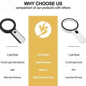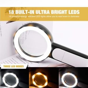 NWT Magnifying Glass with Light, 30 LED Large Handheld Cool & Warm Lights with 3 Modes, Illuminated Magnifier for Reading, Inspection, Coins, Jewelry, Exploring