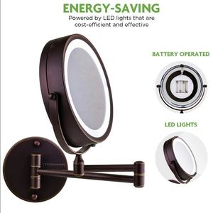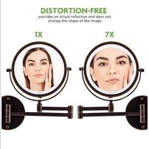 Ovente Wall Mounted Vanity Makeup Mirror 7 Inch with 7X Magnification and LED Light, 360 Degree Swivel Rotation with Distortion Free View, 4 AAA Batteries Operated, Antique Bronze (MFW70ABZ1X7X)