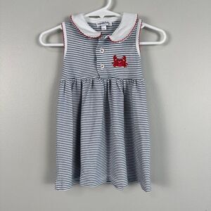 Magnolia Baby Girls Crab Dress Size 12 Months Stripes Sleeveless Nautical 12m