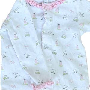 Magnolia Baby Girls Long Sleeve Golf Print Ruffle One Piece Footie. 9 Months.