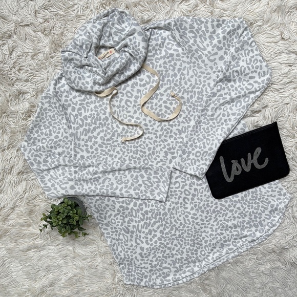 Magnolia Boutique Leopard Funnel Neck Tunic in Gray & Ivory.