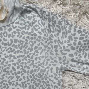 Magnolia Boutique Leopard Funnel Neck Tunic ๐ Gray & Ivory