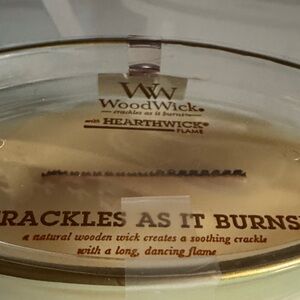 Enjoy the calming crackle of the WoodWick candle. Its cream hue adds elegance to any space.