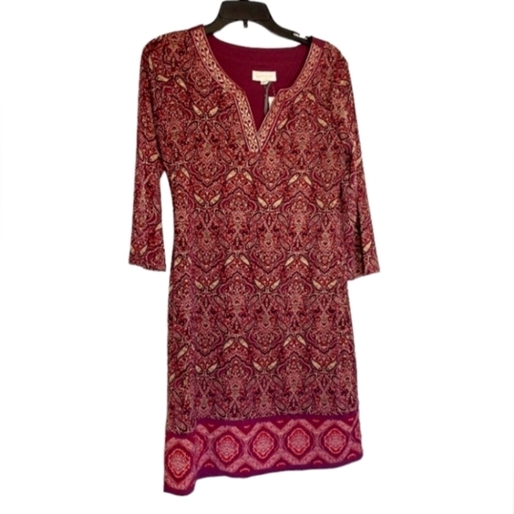 Magnolia Grace Women's Dress Sz S Zuri Embroidered Knit Burgundy Paisley Soft