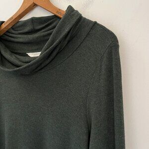 Magnolia Grace Women's Tunic Sweater L Green Cowl Neck Button Side Long Sleeve