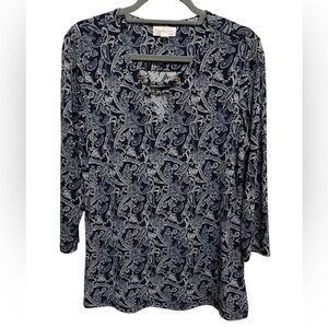 Magnolia Grace - navy 3/4 length sleeve top - keyhole neckline - only worn once or twice - size L
