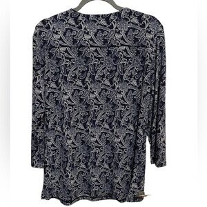 Magnolia Grace - navy 3/4 length sleeve top - keyhole neckline - size L
