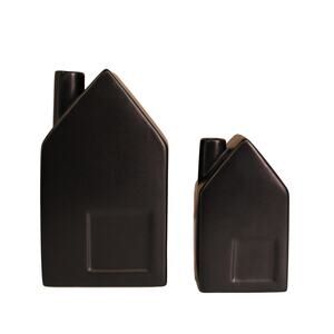 Magnolia Home Black Ceramic House Bud Vases Large & Small set of 2