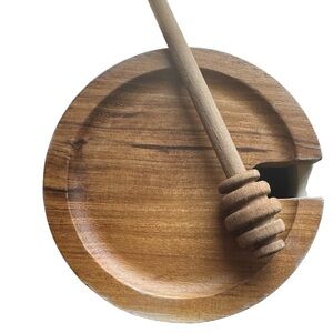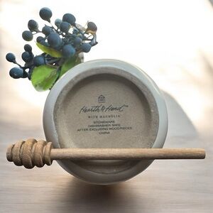 Magnolia Home Ceramic Honey Jar with Wooden Lid and Dipping Spoon