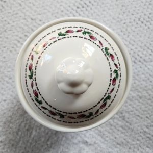 Elegant cream canister with floral design, perfect for any kitchen. Features a beautiful magnolia motif. Ideal for storing dry goods.