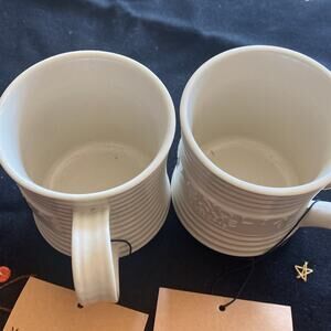 Attractive NWT linen ribbed 2015 mugs. High quality ceramic. Set of 2.