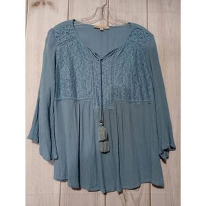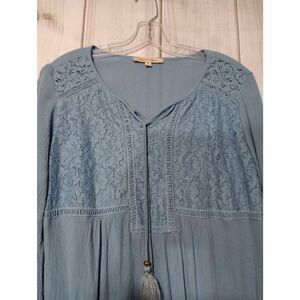 Magnolia Lane Shirt Ladies Medium Blue Bohemian
