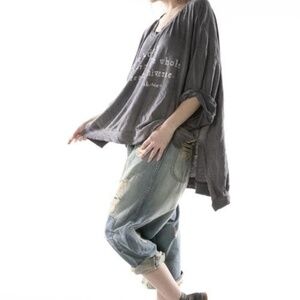 Magnolia Pearl Cotton Jersey Oversized Hi Lo Unicorn Francis Pullover Tee with Distressing & Fading Top 755 – Ozzy - One Size