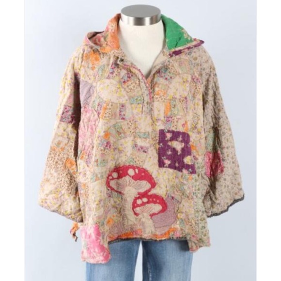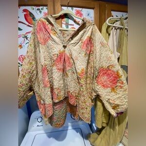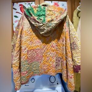 REVERSIBLE Vibrant patchwork hoodie with a mix of colors and patterns. Features a cozy hood and unique design. P2P 37.8”, L 27”