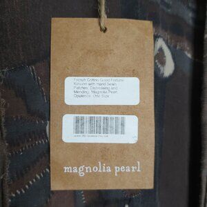The Magnolia Pearl Good Fortune Opulence Kimono is a stunning, handcrafted piece made from 100% French cotton. Featuring handsewn patchwork, intentional distressing, and a front self-tie closure, this one-size-fits-most design embodies Magnolia Pearl’s signature blend of artistry and comfort. A collectible and unique statement garment that pairs beautifully with denim or dresses.