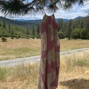 Absolutely gorgeous, beyond adorable handblock Audrey Slip dress from the venerable Magnolia Pearl. Made with soft European cotton and the most beautiful, bespoke applique details. The dress has a balanced drape with adjustable straps and the most epic tiny polka dots that contrast the violet background perfectly. The raw edges and seams combine with subtle distressing that is the standard Magnolia Pearl way. Live your bohemian dreams and make going out or staying in an art form.