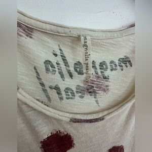 As with all Magnolia Pearl, there is distressing, raw edges and fading.