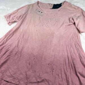 Magnolia Pearl Women's Shirt Distressed Ombre Tunic Top Short Sleeve Pink OSFM