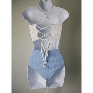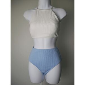 Magnolia Place White & Blue High Cut Bikini 2pcs SET Swimwear L