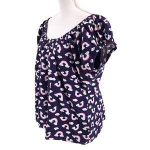 Magnolia Place Women’s Navy Blue and Rainbows Short Sleeve May Blouse Size 5X
