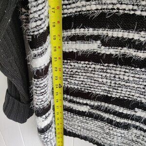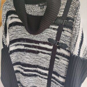 Magnolia, Soft Knit Sweater Jacket with 2 leather closures. Black & White. XXL