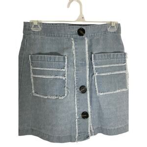 Magnolia South Front Button Raw Hem Denim Skirt Medium Boho Western Retro Pencil