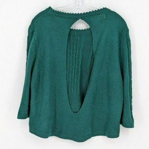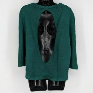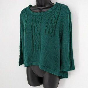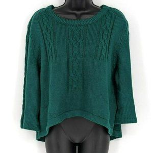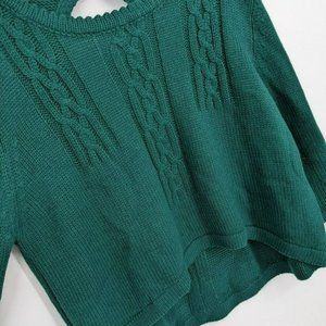 Mags & Pye Sweater OS Hunter Green Oversized Loose Fit Cable Knit Open Back Crop