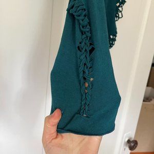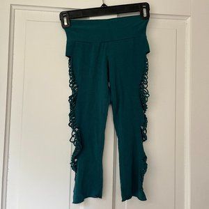 MahaDevi Design Malaya Yoga Tights with Braided Leg in Teal, never worn - popularized by @YogaGirl on instagram. Other colors shown for style/fit.
