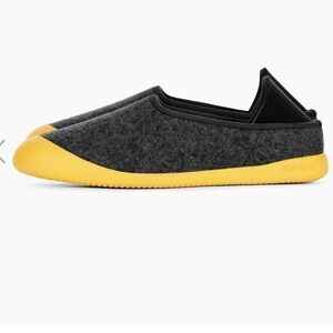 Features: wool lining. Neoprene heel gently secures foot in place. Machine washable