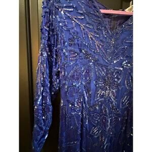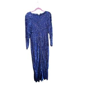 Maharaj by Cotton Candy Blue Silk Cobalt Beads Sequins Dress Size Small