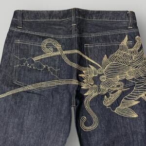 Maharishi Dragon Embroidered Jeans Hemp Cotton Denim Dark Wash Mens XL 36 x 30
