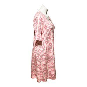Mahi Gold Large Pink White Geometric Short Sleeve Scoop Neck Dress
