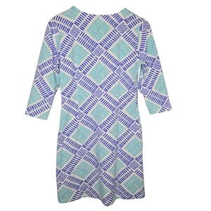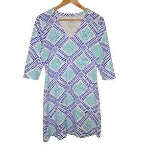 Mahi Gold Womens Preppy Geo Print V Neck Cotton Stretch Shift Dress Size Medium
