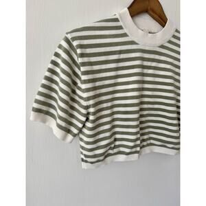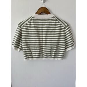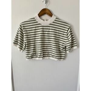 Mahina Hawai’i Light Green White Striped Mock Neck Crop Top Size Small