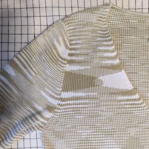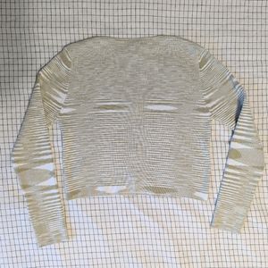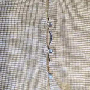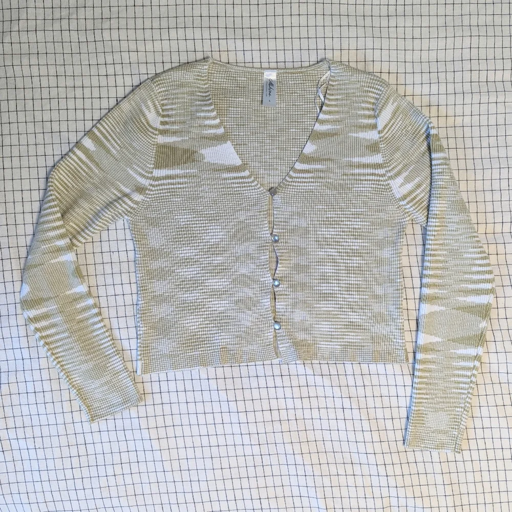 Mahina Ribbed Cardigan with pearly buttons. Super comfy with beautiful mossy green and white pattern. Slightly cropped, see photos for measurements. Torso width unstretched is 16", but fabric stretches to about 23", fits to flatter each unique body. Like-new condition, from smoke-free home. From Mahina, an upscale Hawaii boutique.