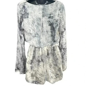 EUC, USA made, from a boutique in Hawaii. Abstract cream and gray/black print that faintly gives off animal print vines. Features bell sleeves, elastic waist to expand or cinch depending on your frame. Front of romper and shorts are lined. Dress it up with heels and a clutch for dinner, or down with chunky sandals for brunch! Ships quick from a pet and smoke free home.
