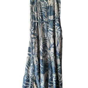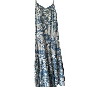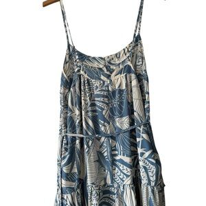 Mahina Tropical Print Slip Tiered Dress With Adjustable Belt and Pockets Size M