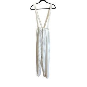 Mahina Pinstripe Pants With Removable Suspenders White Size Medium