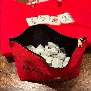 Perfect size to hold a set of regular size American mahjong tiles along with cards and other necessities. Strong zipper and sturdy canvas make this new bag a perfect way to store your tiles.