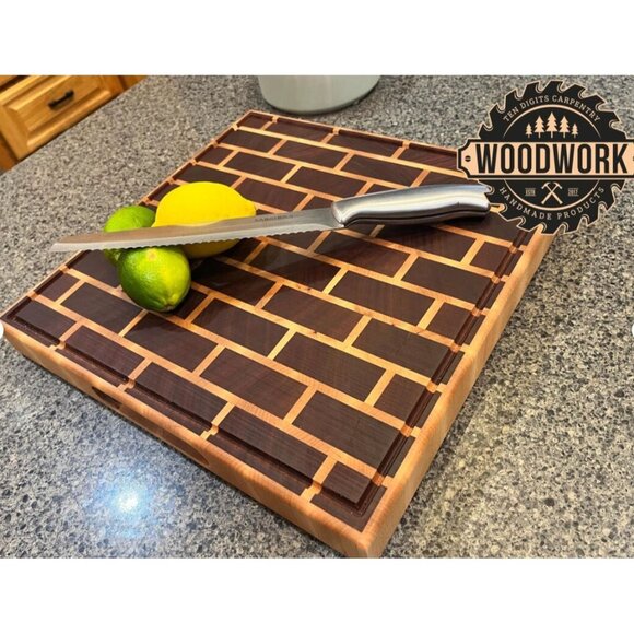 Crafted with precision, this sturdy cutting board features an elegant brick pattern, making it both functional and visually appealing for food preparation.