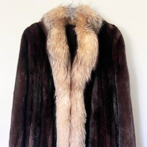 Mahogany Mink Fur Coat Size 10 Dyed Fox Tuxedo Long York Furrier Great Condition