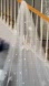 Stunning white lace wedding vail featuring a long, flowing train. Perfect for a memorable wedding day.