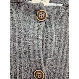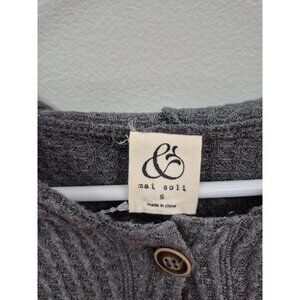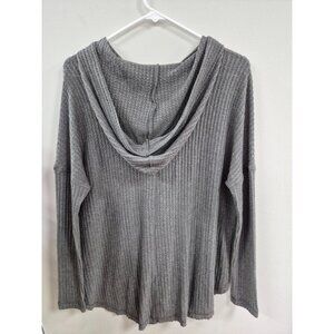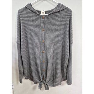 Mai Soli Gray Ribbed Button-Down Hooded Long Sleeve Tie Top Womens S