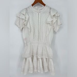 Maia Bergman Mery Dress White Eyelet Lace Mini Flutter Ruffle Layers Medium