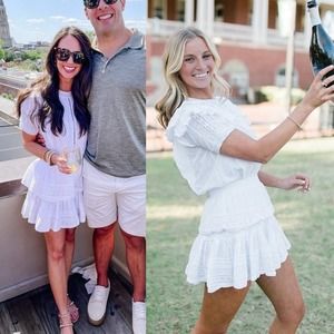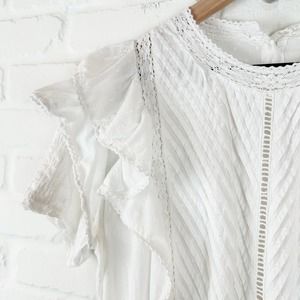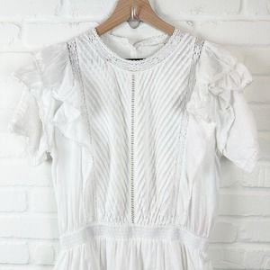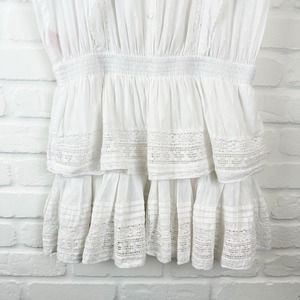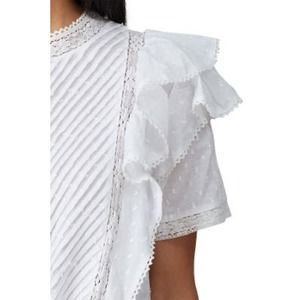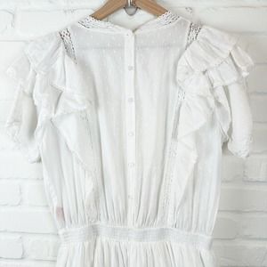 Maia Bergman Mery Mini Dress Eyelet lace Cotton flutter sleeves White Large